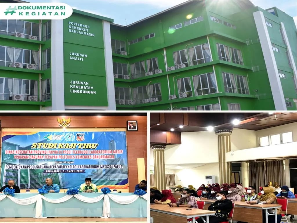 Dalam rangka meningkatkan kualitas pelayanan kesehatan di Papua, Dinas Kesehatan Papua melakukan studi kaji tiru di Prodi Teknologi Laboratorium Medis Program Sarjana Terapan Poltekkes Kemenkes Banjarmasin pada tanggal 3-5 April 2023. Studi ini dilakukan sebagai bagian dari upaya untuk membentuk program studi Sarjana Terapan Teknologi Laboratorium Medis di Papua.